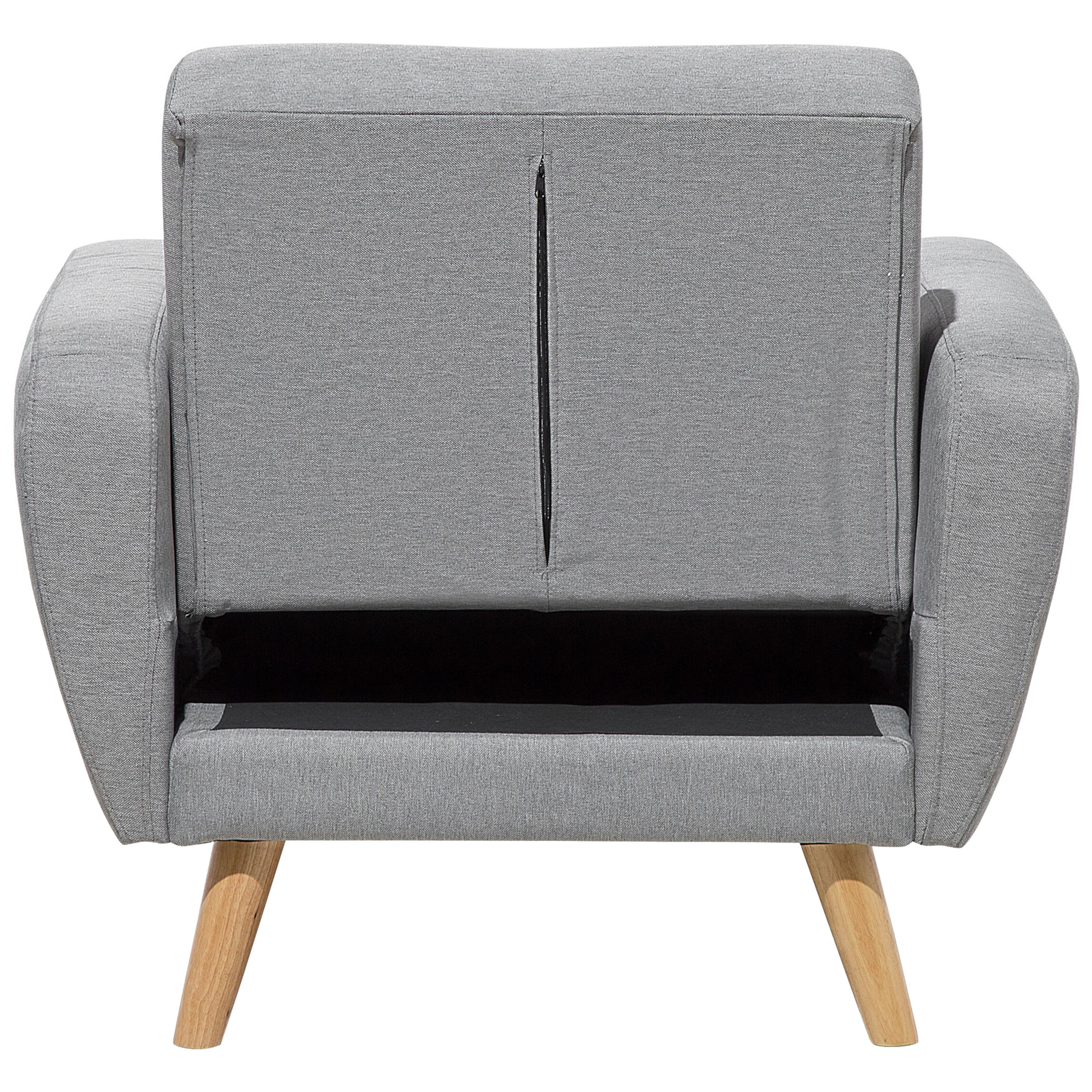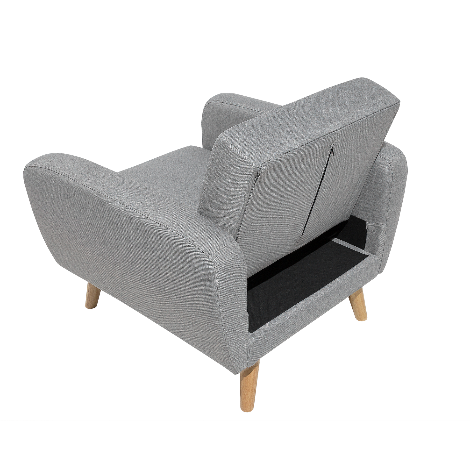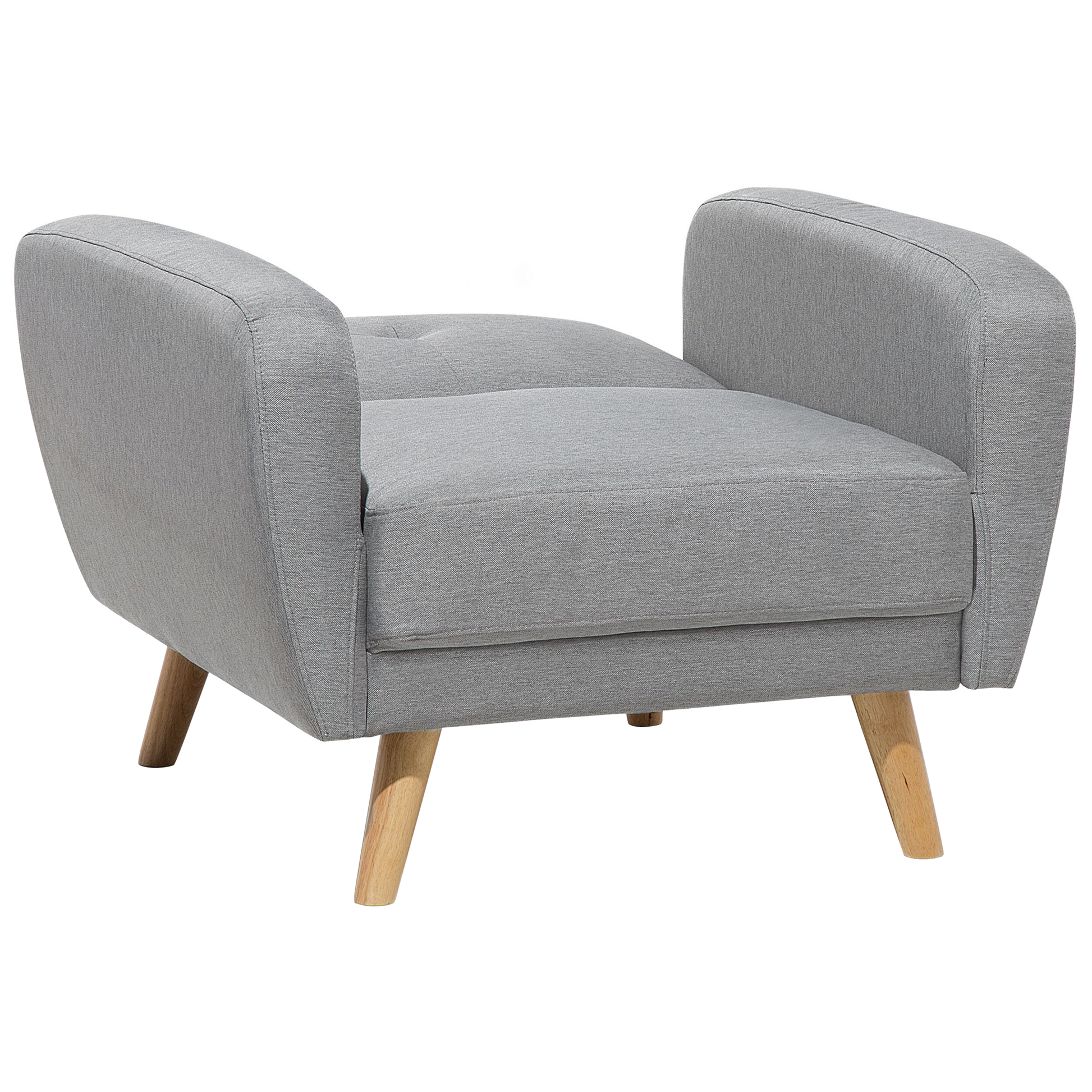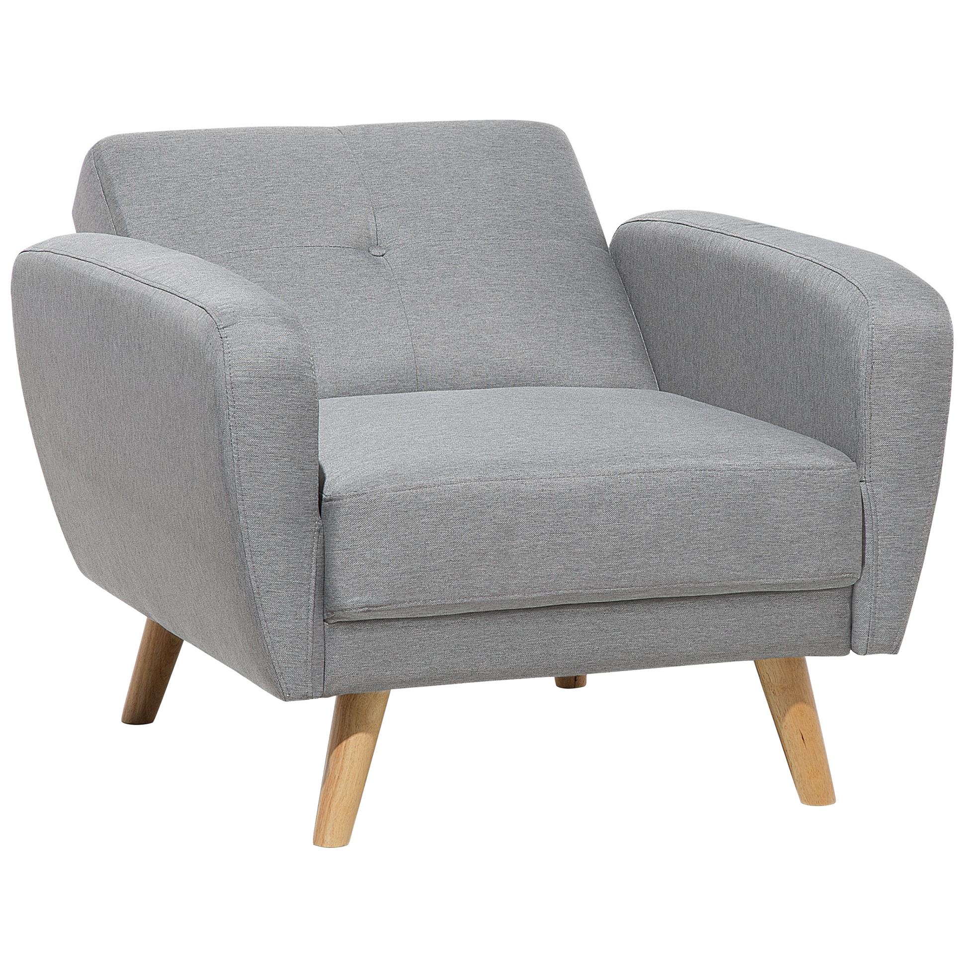 Dieser stilvolle Polstersessel vereint den beliebten Retro Stil mit optimalem Sitzkomfort. Die hohen Armlehnen sowie die schräge Rückenlehne sind in einer angenehmen Komforthöhe gehalten und sorgen für ein bequemes Sitzgefühl. Der strapazierfähige Stoffbezug und die Knopfheftung runden das trendy Design ab, während die hellen Holzbeine Stabilität versprechen. Für besondere Funktionalität sorgt die klappbare Rückenlehne. Material: Polyester. Zusätzliches Material: Gummibaumholz. Material Zusammensetzung: 100% Polyester Gewicht: 24 Montage: Teilweise montiert Holzart: Hevea brasiliensis Holzursprung: China Gewichtskapazität: 150 Polsterstärke: 15 Sitzhöhe: 41 Das Angebot beinhaltet: 1 x Sessel Sitzfläche: 63x59 Höhe: 82 zusätzliche Information: Die Beine befinden sich in einer praktischen Tasche unter dem Sitz., Um sicherzustellen, dass die Konstruktion stabil und die Nutzungssicherheit gewährleistet ist, sollte man 2 Wochen nach dem Zusammenbau überprüfen, ob die Ware auch korrekt montiert wurde. Ausserdem ist alle 3 Monate zu prüfen, ob die Schrauben richtig festgezogen sind. Breite: 89 Tiefe: 85 Art: Fernsehsessel Stil: Retro Allgemeine Farbe: Grau Schatten: Hellgrau Muster: Ohne Muster Hauptmaterial: Polyester Füllmaterial: Schaumstoff Arm Stil: Gerade