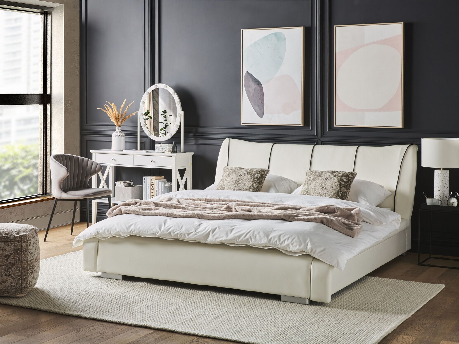 Wasserbett Echtleder NANTES 140 x 200 cm Cremeweiss