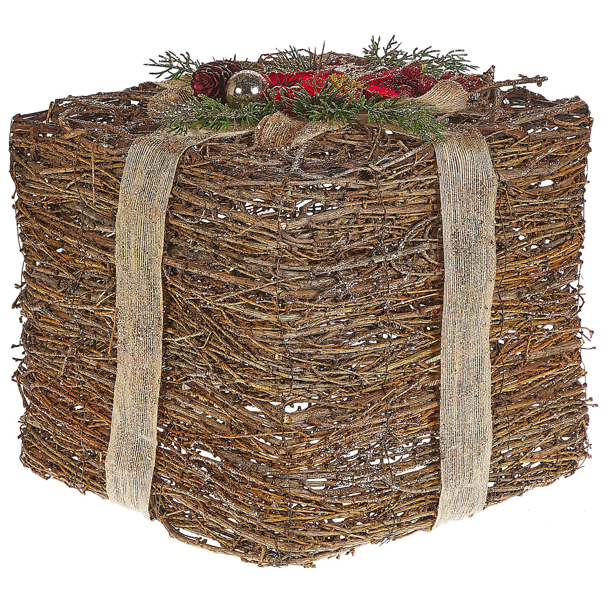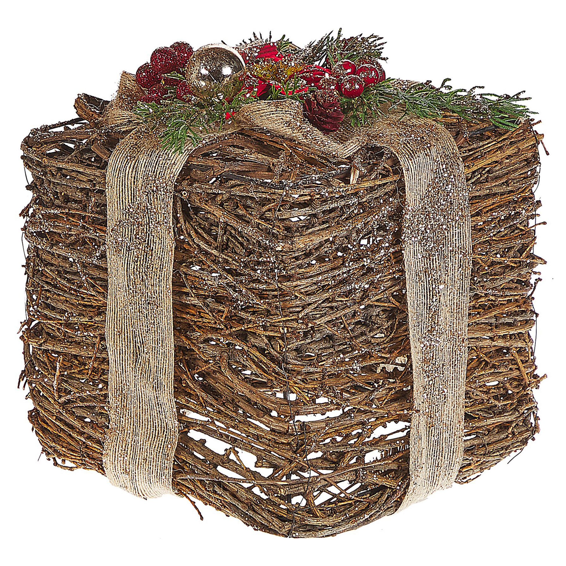 Dank diesen Flecht Dekorationen geben Sie jeder Tischfläche eine weihnachtliche Ausstrahlung. Beide Deko Geschenke bestehen aus einem Metallgestell, das mit einem Rattangeflecht aufwändig umflochten wurde. Zusätzlich, wurden sie mit einer Schleife, Kunststoffzweigen, -blumen und -beeren in Rot dekoriert. Der schimmernde Glitterstaub und der natürlich schöne Rattan-Farbton tauchen jeden Wohnraum in eine bezaubernde Weihnachtsstimmung. Das Set kann zusammen oder auch einzeln aufgestellt werden und gerne mit anderen Dekorationen kombiniert werden. Material: Rattan. Zusätzliches Material: Kunststoff, Metall. Gewicht: 1 Montage: Benötigt keine Montage Das Angebot beinhaltet: 2 x Dekoration Höhe: 28/21 zusätzliche Information: Da jedes Produkt handgefertigt wird, kann es zu kleineren Abweichungen in der Farbe und der äusseren Struktur kommen. Diese Abweichungen stellen keinen Qualitätsmangel dar, sondern sind eine warentypische Eigenschaft. Breite: 29/19 Tiefe: 29/19 Art: Dekofigur Stil: Klassisch Allgemeine Farbe: Naturfarben Hauptmaterial: Rattan