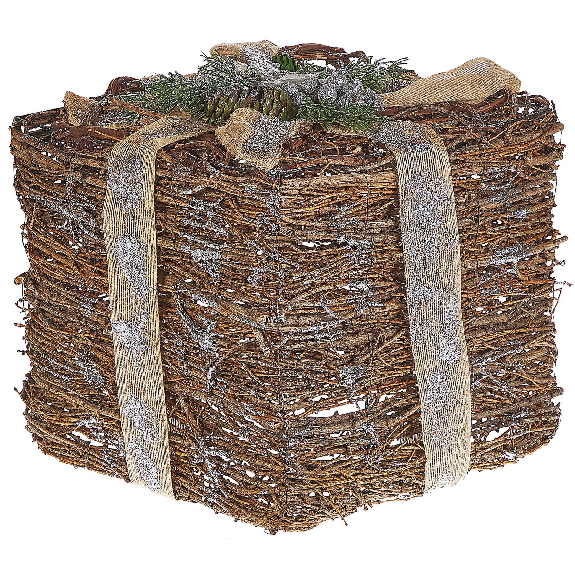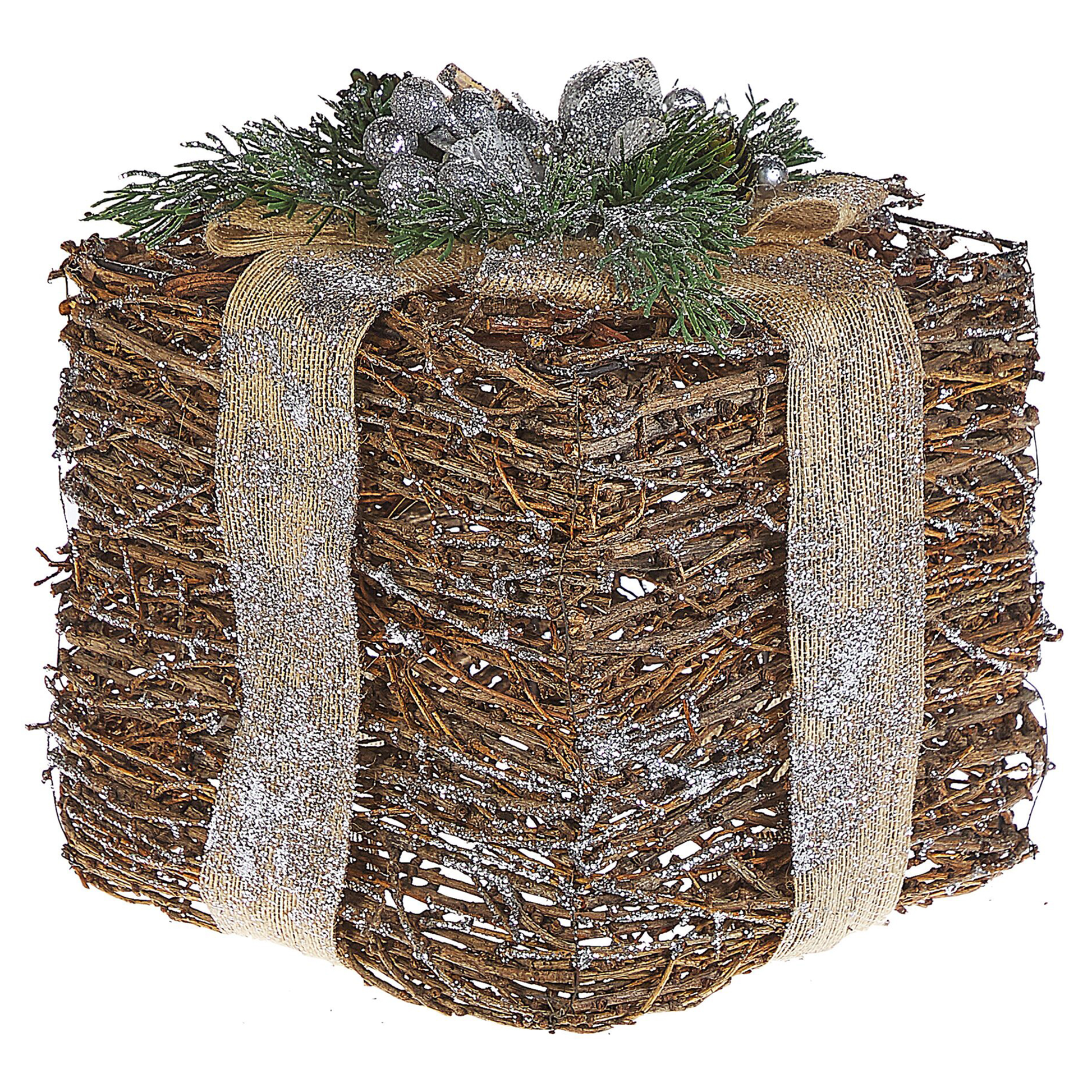 Weihnachtsdeko Rattan silber Geschenk 2er Set INARI