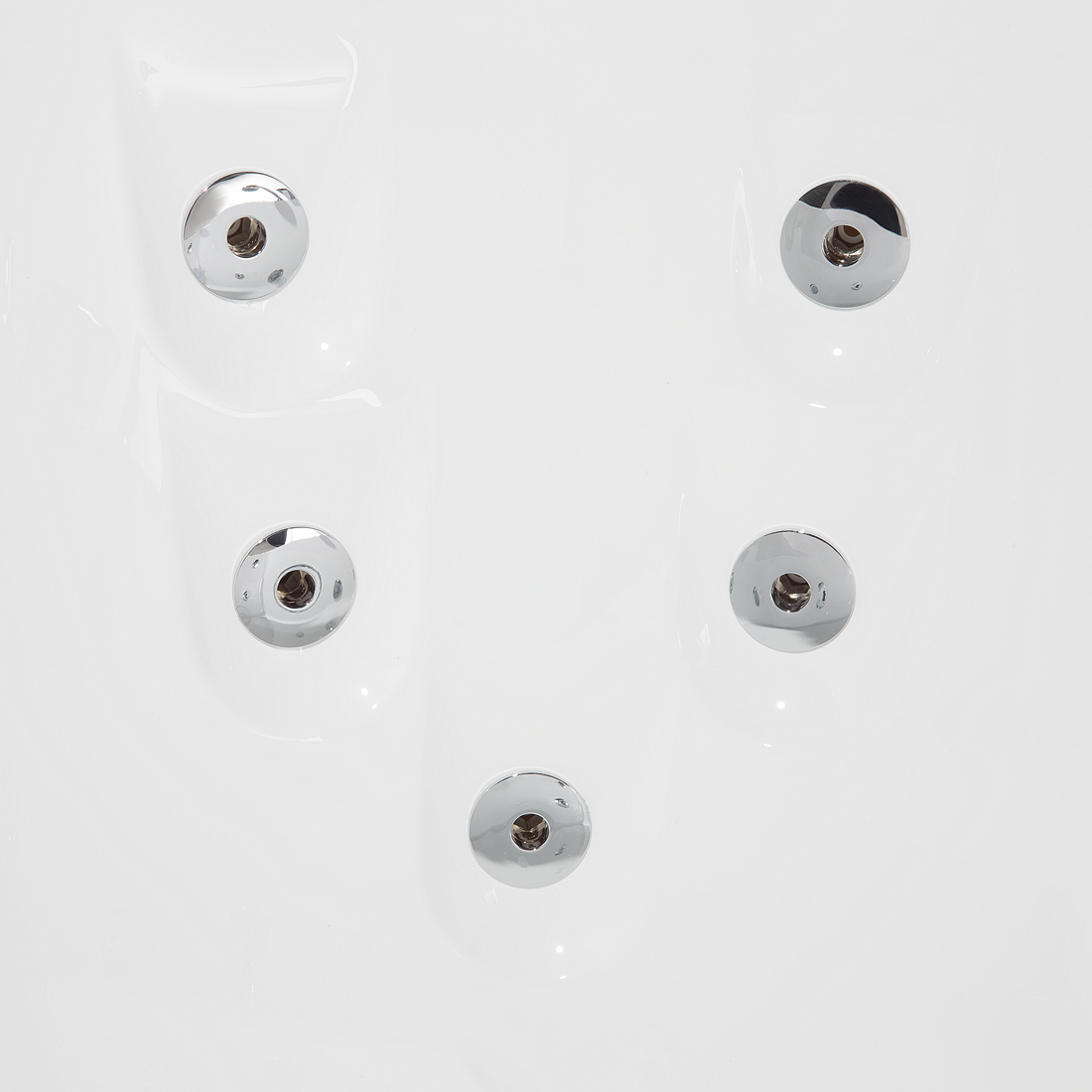 Geniessen Sie die wohltuende, belebende und entspannende Wirkung eines sprudelnden Whirlpools in Ihrem eigenen Badezimmer! LED Unterwasserbeleuchtung sowie 5 grosse und 10 kleinere Wasserdüsen machen Ihr Sprudelbad zu einem richtigen Wellnesserlebnis. Die geräumige Eckwanne aus glänzend weissem Sanitäracryl bietet ausreichend Platz für zwei Personen. Die verchromte Wasserfall-Armatur mit Handbrause und die beiden bequem gepolsterten, formschönen Nackenstützen aus schwarzem Kunstleder unterstreichen das elegante Design. Material: Acryl. Zusätzliches Material: Stahl, Kunststoff. Gewicht: 80 Kapazität: 2 Personen Montage: Die Montage sollte durch einen qualifizierten Fachmann erfolgen Gewichtskapazität: 450 Das Angebot beinhaltet: Inkl. Abflussrohr, 1 x Whirlpool, 1 x Überlaufsystem, 1 x Wasserfall Armatur, 1 x Handbrause mit Schlauch, 2 x Kopfstützen Höhe: 63 zusätzliche Information: Der Anschluss an das Stromnetz darf ausschliesslich von autorisiertem und qualifiziertem Personal durchgeführt werden., Alle Anschlüsse müssen entsprechend dieser Bedienungsanleitung und den in Ihrem Land gültigen Normen durchgeführt werden., Um Transportschäden zu vermeiden, sind die Whirlpools nicht zu 100%, sondern nur zu 85% vormontiert! Das Abdichten und Kontrollieren der Leitungen, Sichtfenster und Düsen durch einen Sanitär liegt in der Verantwortung des Kunden., Bitte beachten Sie, dass die Seriennummer des Modells sowohl auf dem Wannenrahmen als auch auf der Verpackung aufgeführt ist. Die Seriennummer sollte aufbewahrt werden, da sie im Falle einer Nachlieferung von Ersatzteilen oder bei Garantieansprüchen erforderlich ist., Vor der Benutzung der Massagefunktion muss die Wanne mit Wasser gefüllt werden, damit die Pumpe nicht beschädigt wird., Geeignete Schläuche sollten von einem Fachmann vor Ort erworben und angeschlossen werden. Es dürfen auf keinen Fall die vom Verkäufer gelieferten Anschlussschläuche verwendet werden., Alle Schläuche müssen von einem Fachmann vor Inbetriebnahme und danach in regelmässigen Abständen überprüft und abgedichtet werden. Die Schläuche können sich während des Transports oder mit der Zeit lösen., Sollte ein Defekt vorliegen, ist der Kunde für den Aus- und Wiedereinbau der defekten Teile verantwortlich., Kunden in der Schweiz und England müssen einen länderspezifischen Stecker montieren. Gestalten: Dreieckig Breite: 113 Länge: 158 Art: Whirlpool Badewanne Eckmodell mit LED Stil: Modern Allgemeine Farbe: Weiss Hauptmaterial: Acryl Orientierung: rechtsseitig Leistung: 750 W